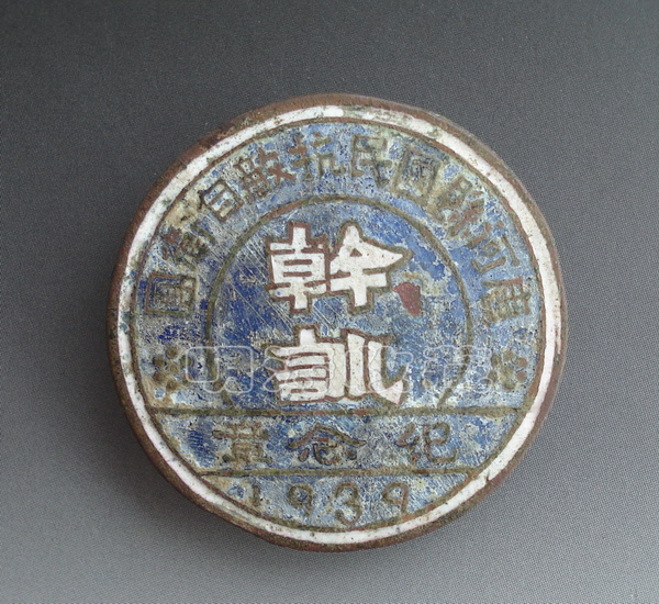 1939年唐河县国民抗敌自卫团干训纪念章,编号458(见下图)