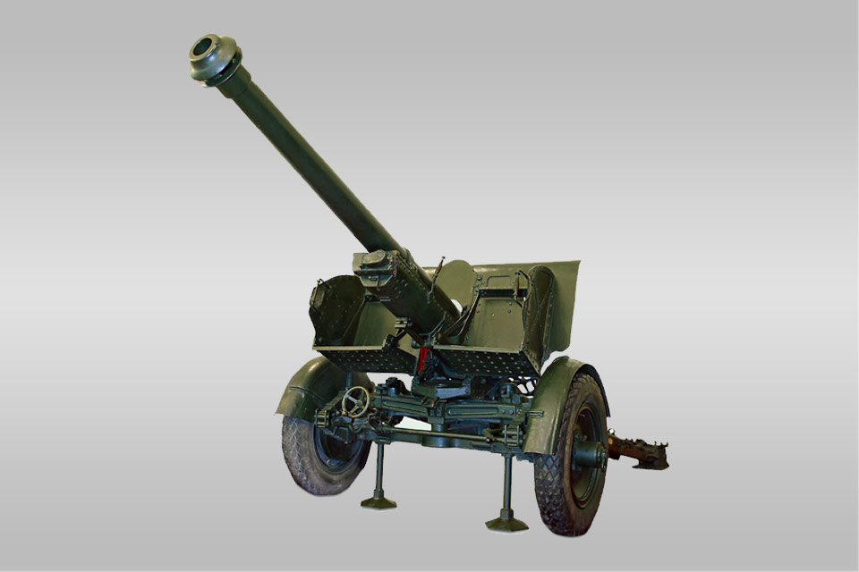 这是日本造 75 机动九〇式野炮。该型火炮于 1930 年生产,1936 年装备现代化师炮兵部队,但数量较少。由于其具有炮口制退机,射程远,射速高,威力非一般火炮可比,并且可用高速牵引车牵引以伴随机械化部队。抗日战争时期八路军从日军手中缴获,1949 年 4 月,在解放太原战役中,我军用炮火封锁敌机场,该炮击毁敌机九架,出色完成任务,获得“英勇命中 连毁敌机”锦旗一面,被誉为解放太原功勋炮。