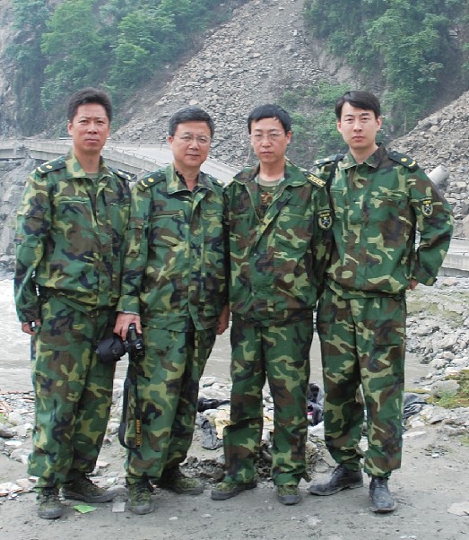 2008年5月12日,汶川大地震的余波让几千公里外的北京都感到颤抖。在党中央、中央军委和胡主席的指挥下,几天内十几万大军火速集结到10万平方公里的灾区。为了全面真实地见证我军历史上罕见的多军兵种大规模联合救灾行动,军博党委迅速作出决定,派文物征集和美术创作人员赶赴抗震救灾前线。5月27日,总部批准的当天,我和文物处张炳然、王腾飞以及设计处油画家孙立新等一行4人立即飞赴成都,此前国画家陈钰铭已和新闻媒体同行先期到了灾区。在环境异常恶劣、条件异常艰苦的情况下,我们连续奔波12个日日夜夜,行程数百公里,走访了几十个团以上部队和指挥机关,征集了上百件文物,搜集了数千张照片资料,美术创作人员也在前线搜集了大量创作素材。