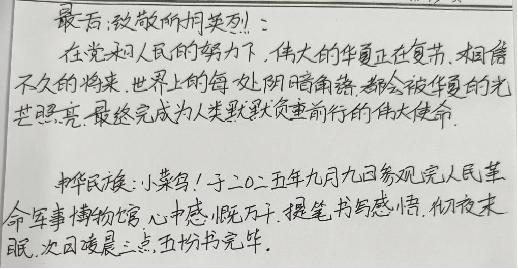 最近,我们收到一位观众的来信,这封长达十几页、彻夜未眠手写的参观感受,感情真挚、质朴,展现了其浓厚的家国情怀,令我们深受感动。